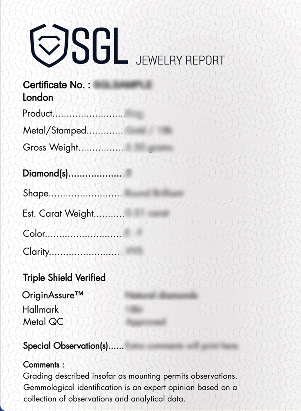 | Diamond Clarity | N/A |